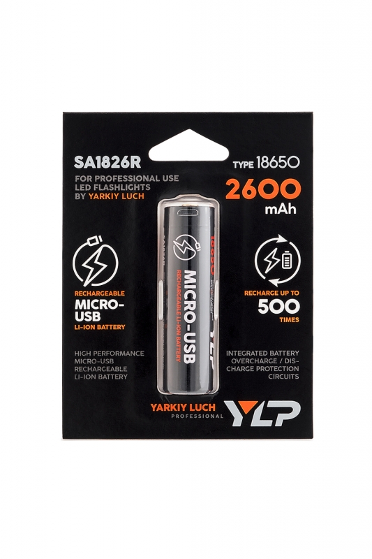 Аккумулятор 18650 ЯРКИЙ ЛУЧ YLP SA1826 Li-ion 3.7В 2600mAh с защитой и встр. зарядкой micro-USB