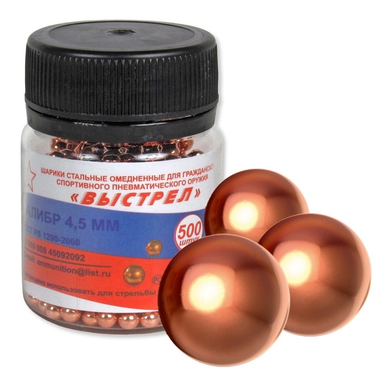 Шарики пневм. Выстрел 4,5мм (омедн). 500шт.