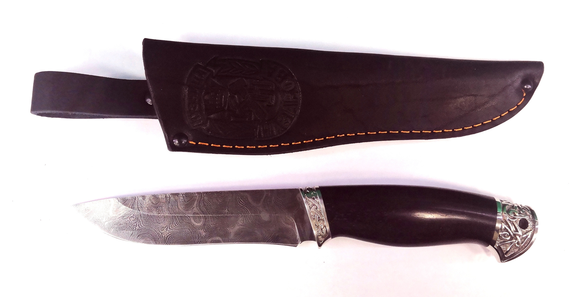 Нож Назарова Сокол сталь дамаск(мельхиор, черный граб)