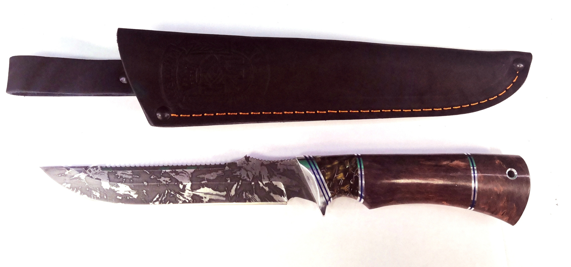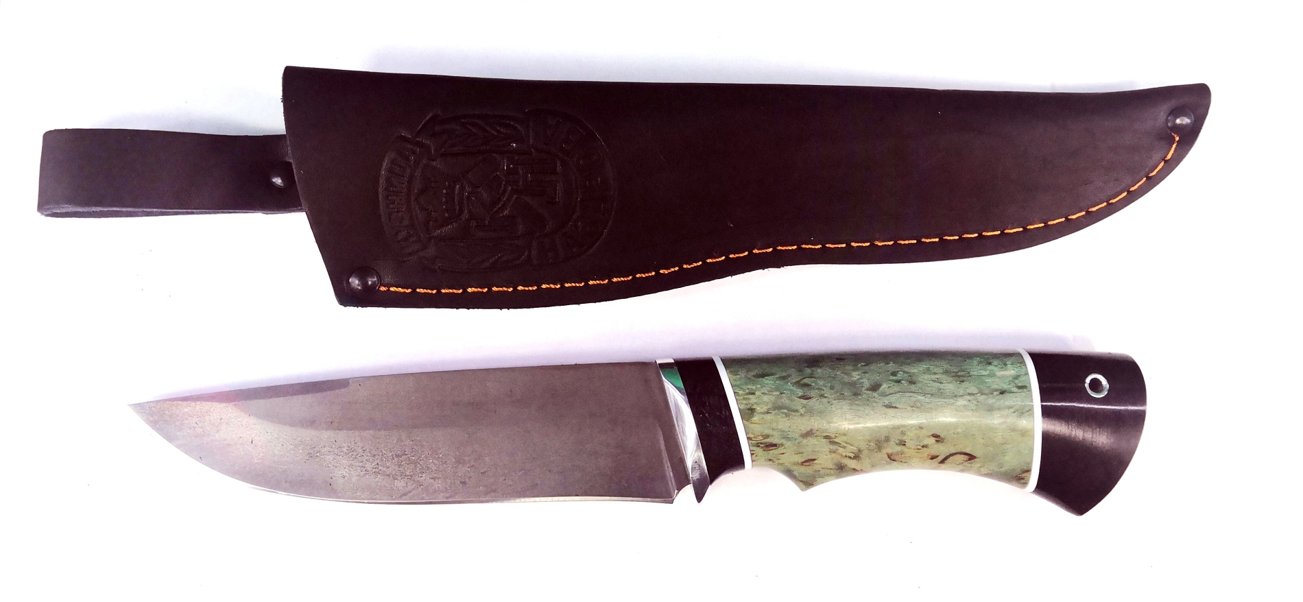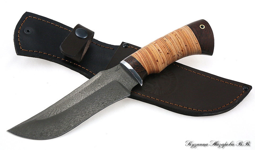 Нож Назарова Рыбак-2 с крючком сталь D2 (карельская береза, искусственный камень)