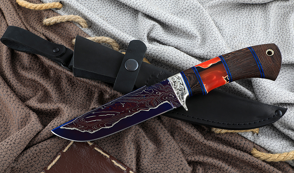 Нож Ворсменский Алтай Дамаск ламинированный с воронением, венге, акрил, мельхиор