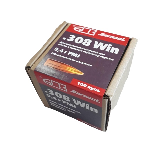 Пуля 308win (FMJ, латунь, 9,4гр. БПЗ)