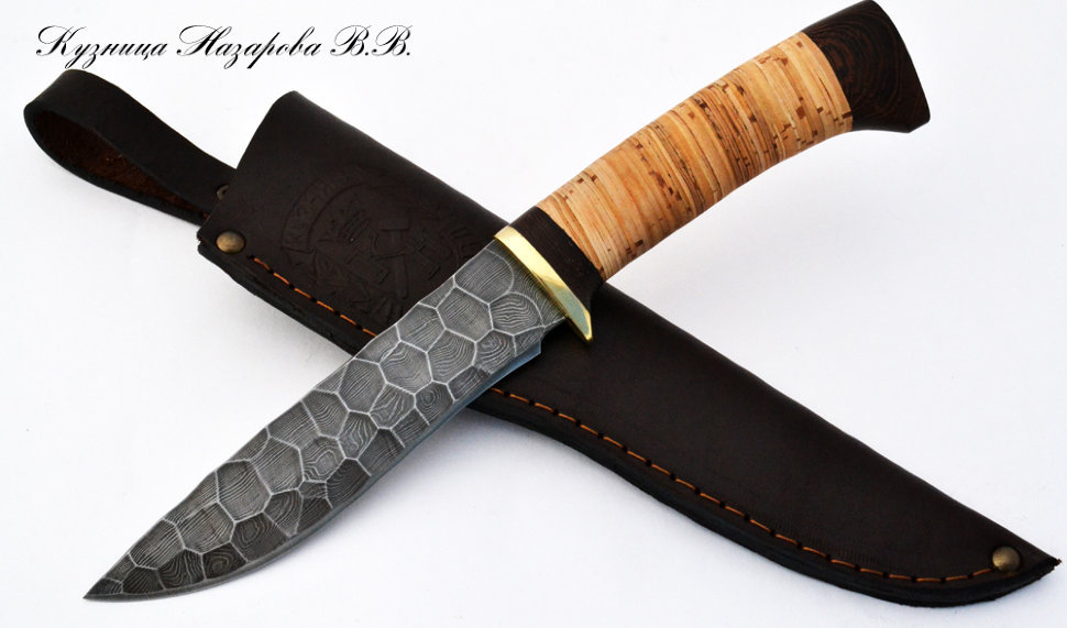 Нож Назарова Варан сталь Дамаск полный камень