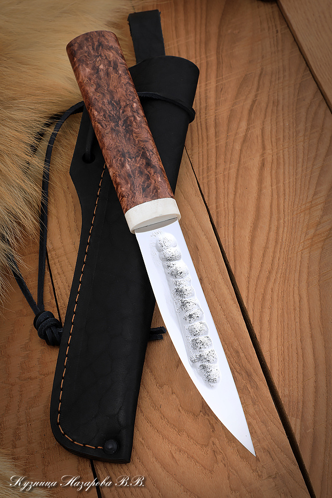 Нож Назарова Якутский 2 сталь х12мф кованый дол (карельская береза коричневая)