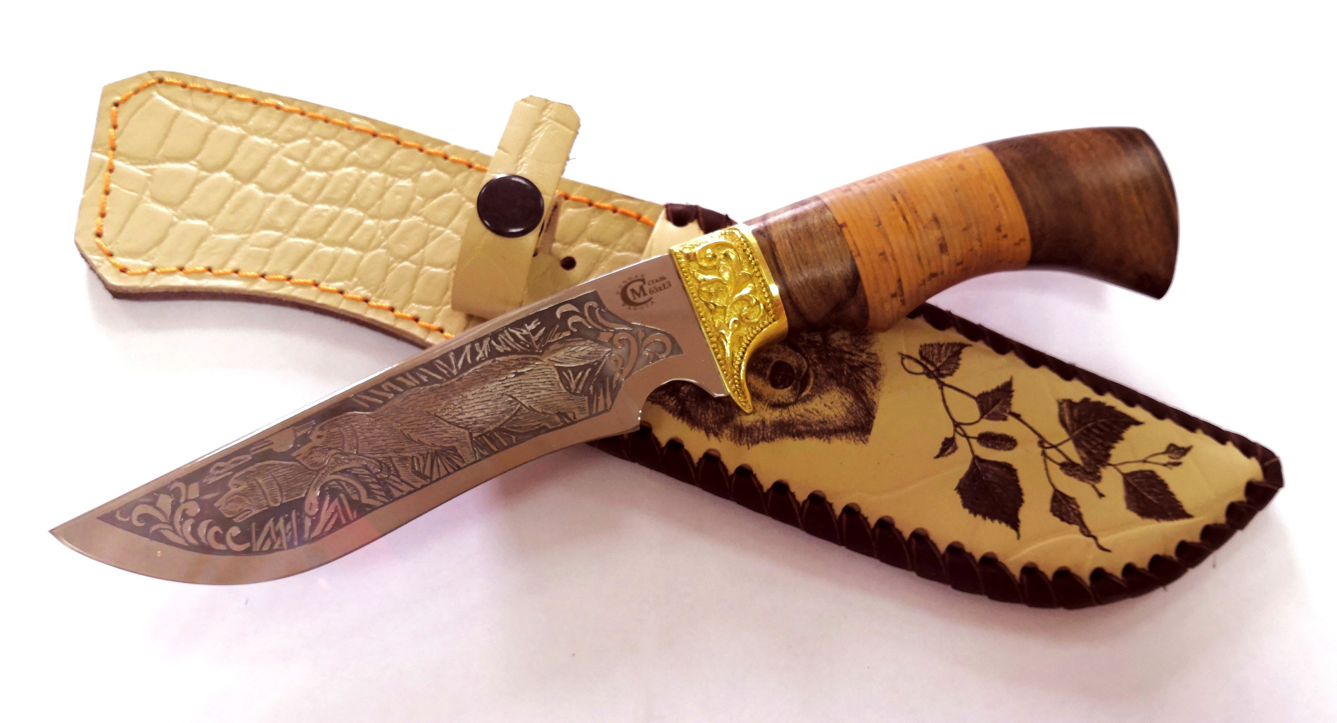 Нож Семина Галеон (65Х13 нерж. рук. береста, литье, гравировка)