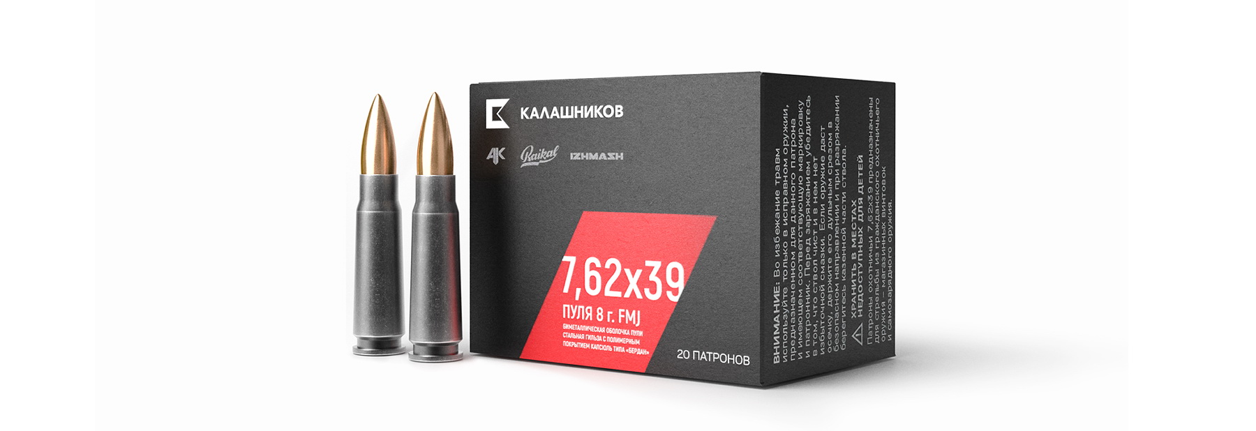 Патрон 7.62х39 Калашников Концерн (FMJ) 8,0гр.(20 шт. уп.)