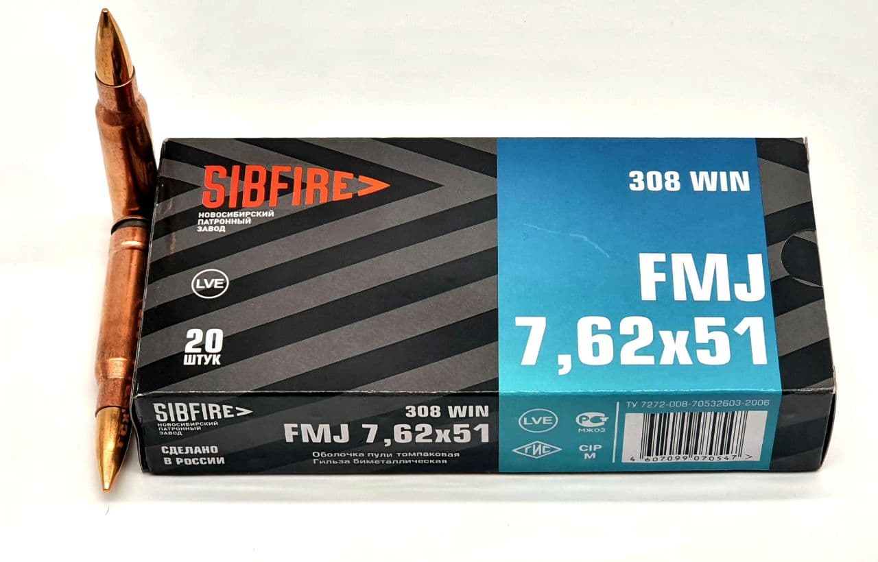 Патрон 7.62х51 (308Win) НПЗ ОБ (FMJ) 9,7г.Томпак