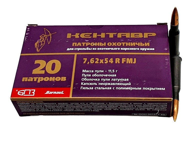 Патрон 7.62х54 БПЗ ОБ (FMJ) Кентавр 11,5гр.