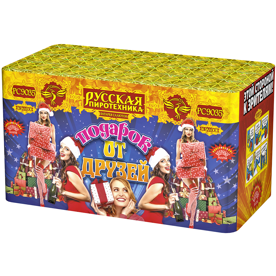 Батарея салютов "Подарок от друзей" (0,8",1,0", 1,2"х56) РС9035