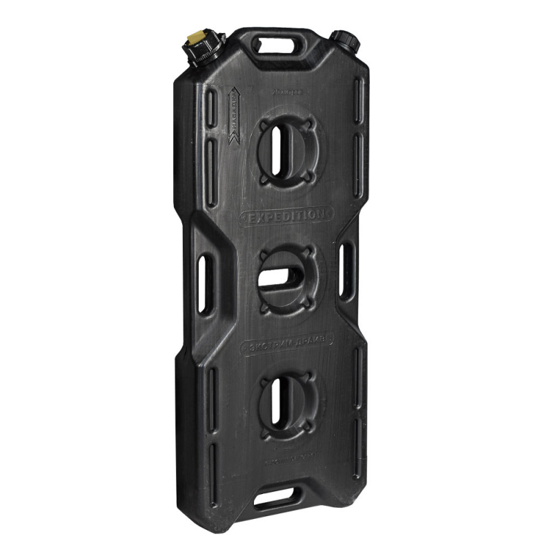 Многие утверждают, что данная тара имеет самую удобную форму на сегодняшний день. Экспедиционную канистру можно закрепить где удобно, в ней присутствует множество ручек и отверстий для крепления в разных местах. Пусть это будет багажник, квадрацикл, мотоцикл, катер, джип, прицеп и т.д.