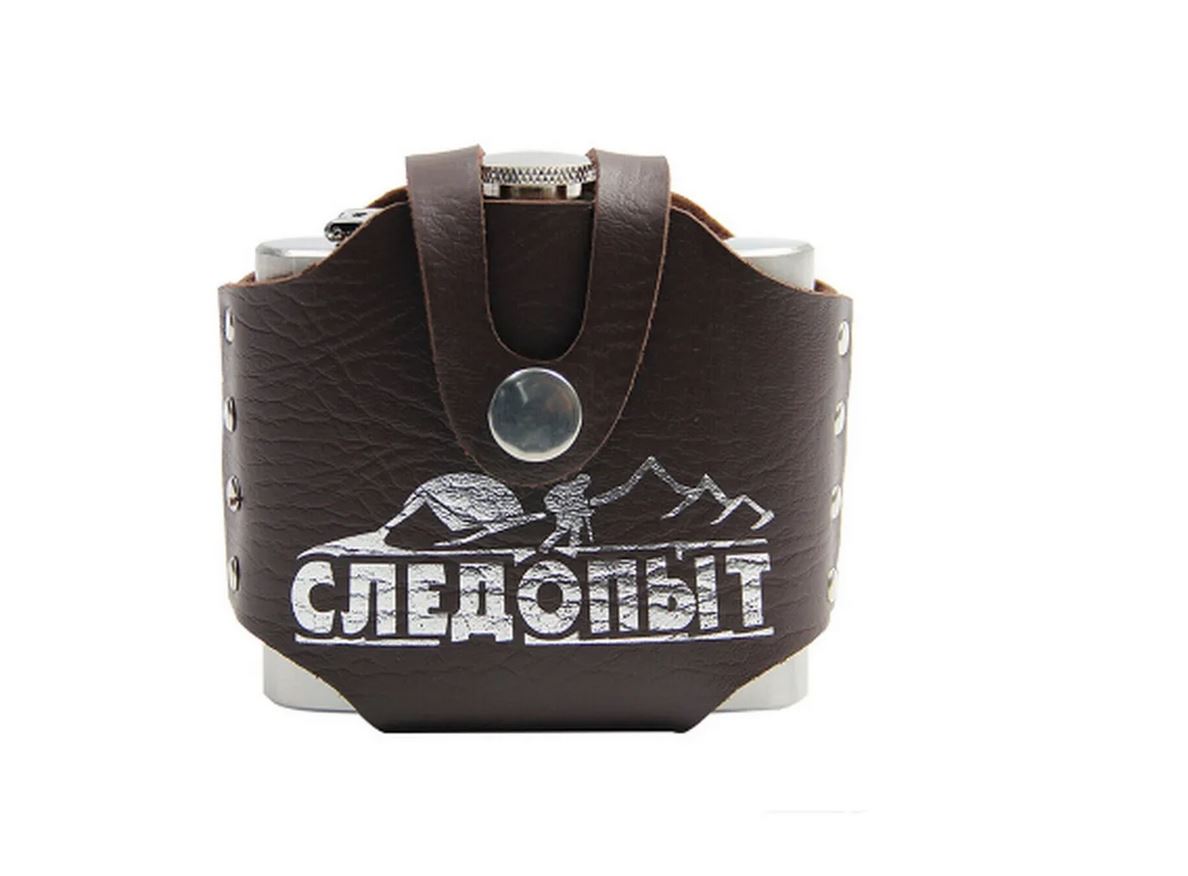 Фляжка «СЛЕДОПЫТ - Freezly» в кож. чехле, 180 мл, цв. корич (PF-BD-F12)