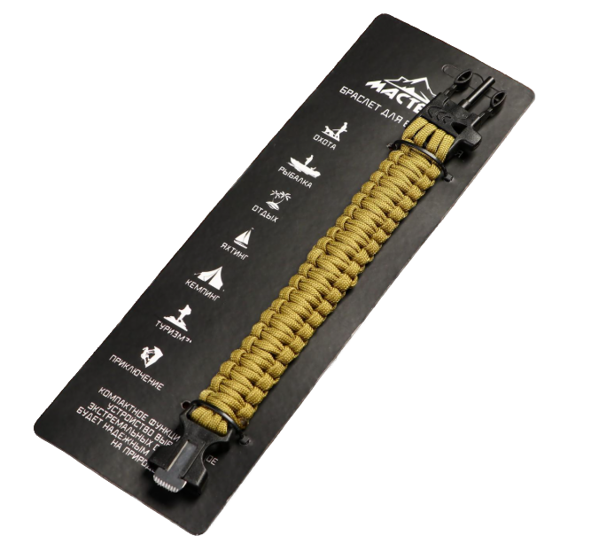Браслет для выживания 3 в1 (паракорд 2 м, свисток, огниво), 25.5х2.5 см, 3 м 2714824