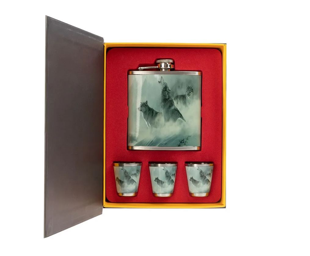 Набор Книга охотника Волки Helios (фляжка 210мл + 3 стопки) (HS-KO-W-A19)