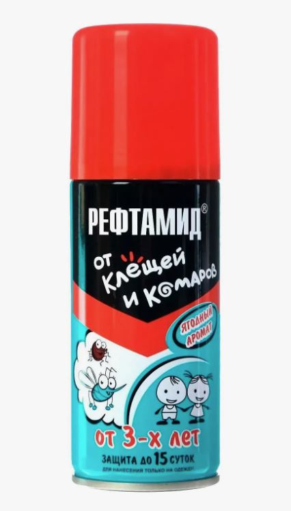 Предназначено для защиты взрослых и детей с 3 лет от таежных и лесных клещей, блох (переносчиков возбудителей опасных заболеваний человека: клещевой энцефалит, боррелиоз, чума и др.), а также от летающих кровососущих насекомых (комаров, мокрецов, москитов) при обработке одежды и других изделий из ткани. Состав средства позволяет наносить его не только на одежду, но и на кожу ребёнка в возрасте от 3 лет. Обладает лёгким ароматом ягод. Состав: альфациперметрин 0,2%, N,N-диэтилтолуамид (ДЭТА) 7,0%, спирт этиловый денатурированный 49,6%, вспомогательные компоненты, отдушка, углеводородный пропеллент.