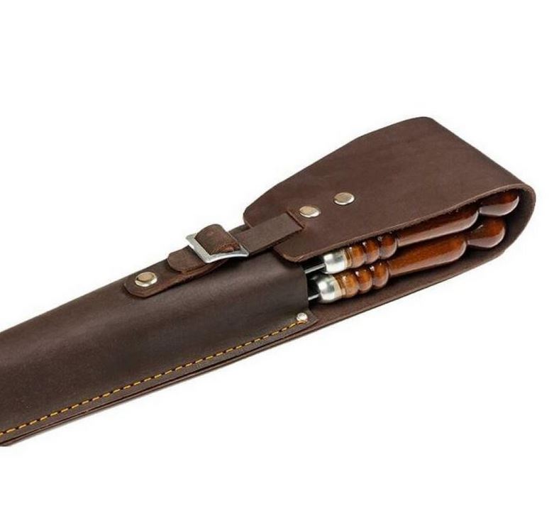Набор шампуров с аксессуарами в чехле из натуральной кожи, 6 шампуров+чехол, 680х95х70 мм, (НЧ-022)