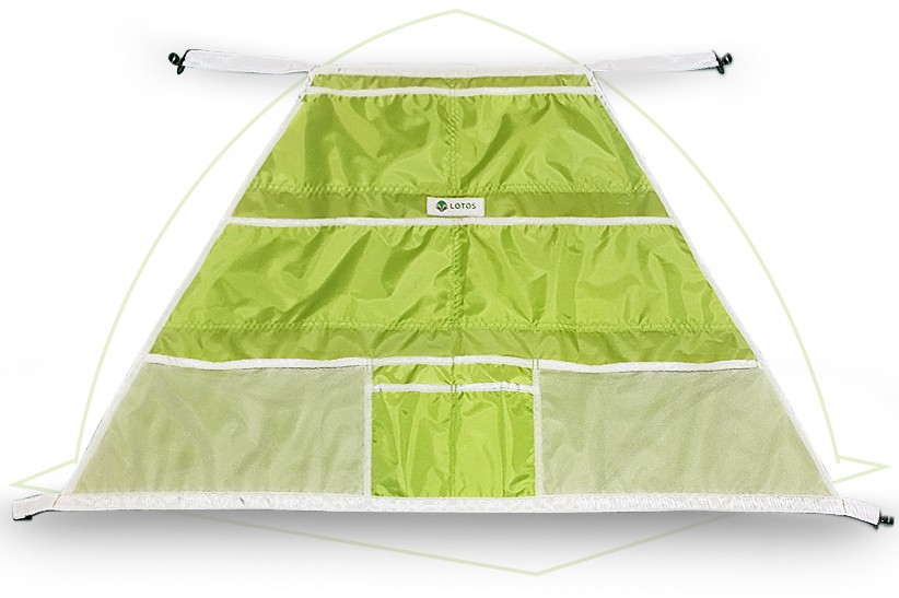 Органайзер «ЛОТОС 2» предназначен для использования в палатках, собранных на универсальном быстросборном каркасе «ЛОТОС 2».