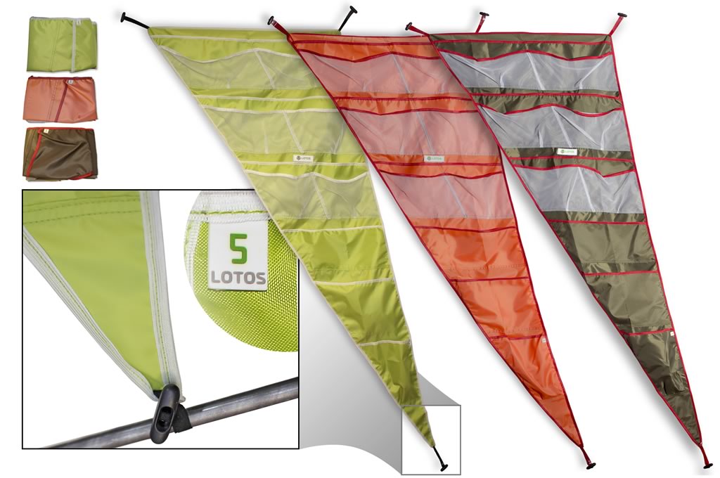 Органайзер «ЛОТОС 5» предназначен для использования в палатках собранных на универсальном быстросборном каркасе «ЛОТОС 5»: