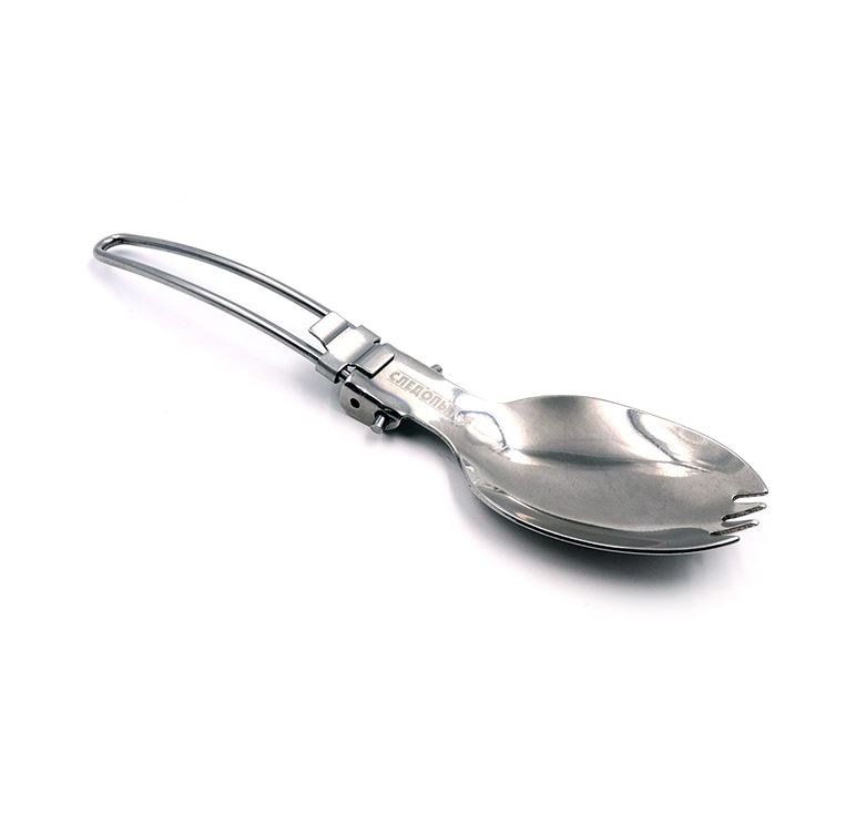 Ложка складная походная СЛЕДОПЫТ, нерж. (ложка-вилка), в чехле,PF-CWS-P33